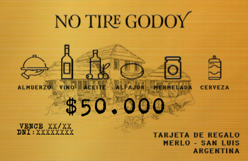 ¡Descubre la libertad de elegir con nuestra Gift Card de $50,000! Úsala para disfrutar de una amplia variedad de productos en nuestra tienda online o deleitarte con una deliciosa experiencia gastronómica en nuestro restaurante. Regala lo mejor y deja que tus seres queridos elijan su momento perfecto. ¡Adquiérela hoy y convierte cualquier ocasión en un recuerdo inolvidable!